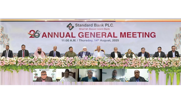 শরি‘আহ্ ভিত্তিক স্ট্যান্ডার্ড ব্যাংক পিএলসি. এর ২৬তম বার্ষিক সাধারণ সভা (এজিএম) গত বৃহস্পতিবার ১৪ আগস্ট পুলিশ কনভেনশন হল, ইস্কাটন গার্ডেন রোড, রমনা, ঢাকায় অনুষ্ঠিত হয়।