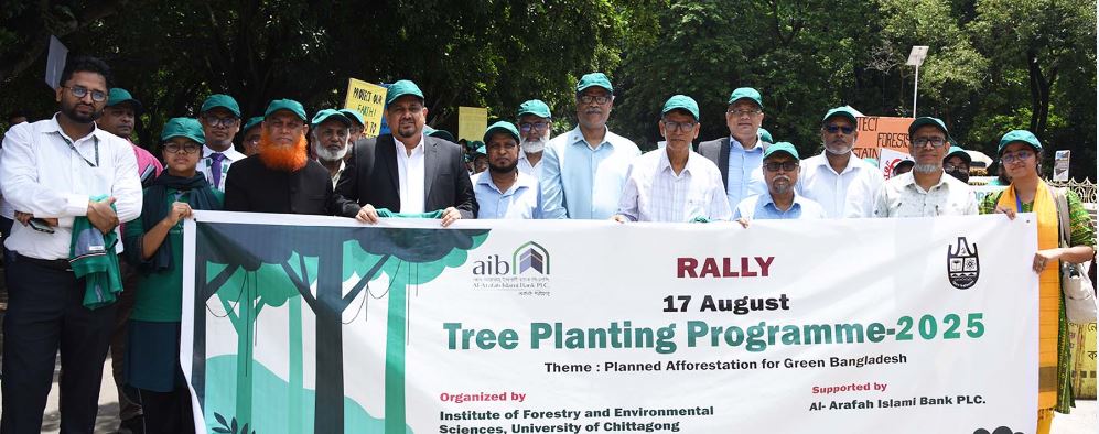 আল-আরাফাহ্ ইসলামী ব্যাংকের উদ্যোগে চট্টগ্রাম বিশ্ববিদ্যালয় প্রাঙ্গণে বৃক্ষরোপন কর্মসূচী উদ্বোধন করা হয়েছে। “পরিকল্পিত বনায়ন করি, সবুজ বাংলাদেশ গড়ি” স্লোগানকে সামনে রেখে গতকাল