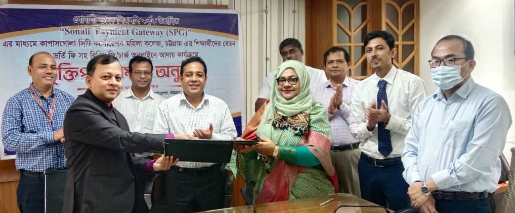 সোনালী পেমেন্ট গেটওয়ের মাধ্যমে শিক্ষার্থীদের বিবিধ ফি ও চার্জ অনলাইনে পরিশোধের লক্ষ্যে সোনালী ব্যাংক পিএলসির সাথে চট্টগ্রামের কাপাসগোলা সিটি কর্পোরেশন মহিলা কলেজের চুক্তি স্বাক্ষর হয়েছে।