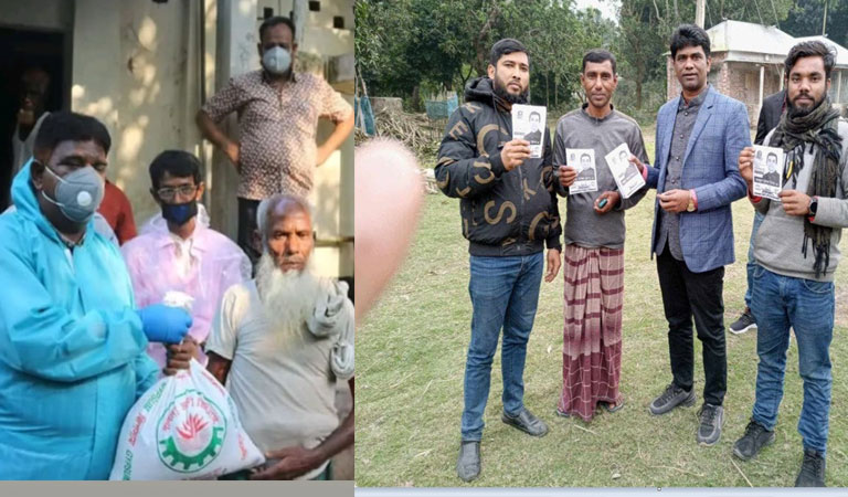 ছবিতে- ত্রাণ বিতরণকারীদের মাঝে কালো মাস্ক পড়া এবং নৌকার প্রার্থীর প্রচার পত্র হাতে লুঙ্গি পড়া ব্যক্তিসহ ৪ জনই ফ্যাসিবাদের দোসর,,,,