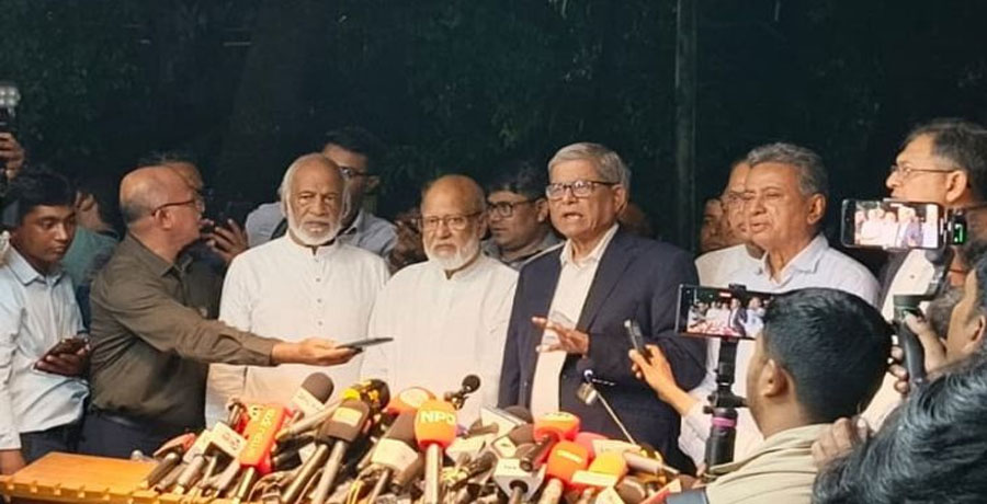 লন্ডনে একটি দলের প্রধানের সঙ্গে বৈঠকে নির্বাচনের সময় নির্ধারণ প্রমাণ করে সরকার একটি দলের উপর দুর্বল- জামায়াতের এমন অভিযোগ প্রসঙ্গে মির্জা ফখরুল বলেন, লন্ডনে প্রধান উপদেষ্টা একটি বৃহত্তর রাজনৈতিক দল বিএনপির প্রধানের সঙ্গে বৈঠক করেছেন- করতেই পারেন। তার এখতিয়ার আছে যেকোনো দলের প্রধানের সঙ্গে বসার। এটা একান্ত তার ব্যক্তিগত বিষয়।