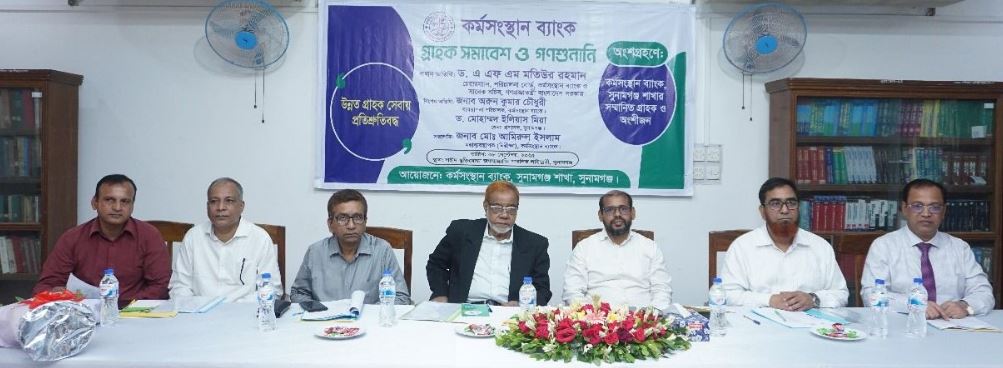 কর্মসংস্থান ব্যাংকের সুনামগঞ্জ শাখা, সুনামগঞ্জ এর গ্রাহক এবং অংশীজনের অংশগ্রহণে আজ সোমবার (৮ সেপ্টেম্বর) শহীদ মুক্তিযোদ্ধা জগৎজ্যোতি পাবলিক লাইব্রেরি, সুনামগঞ্জ-এ গ্রাহক সমাবেশ ও গণশুনানী অনুষ্ঠিত হয়েছে।