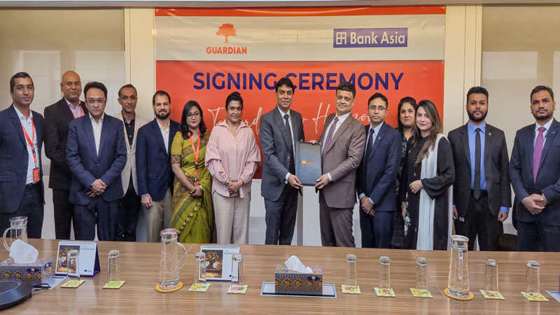 দেশের শীর্ষস্থানীয় করপোরেট গ্রুপ ইন্স্যুরেন্স সেবাদাতা প্রতিষ্ঠান গার্ডিয়ান লাইফ ইন্স্যুরেন্স লিমিটেডের সাথে সম্প্রতি এক চুক্তি স্বাক্ষর করেছে ব্যাংক এশিয়া পিএলসি। এই অংশীদারিত্বের ফলে, ব্যাংক এশিয়ার সকল কর্মী এবং তাদের পরিবারের সদস্যরা লাইফ ইন্স্যুরেন্স ও চিকিৎসা সংক্রান্ত ইন্স্যুরেন্স সুবিধা পাবেন। চুক্তি স্বাক্ষর অনুষ্ঠানটি ঢাকায় গার্ডিয়ান এর প্রধান কার্যালয়ে অনুষ্ঠিত হয়।