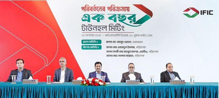 আইএফআইসি ব্যাংক পিএলসি এর বর্তমান পরিচালনা পর্ষদের সফল এক বছর পূর্তি উপলক্ষে শনিবার (১৩ সেপ্টেম্বর) ব্যাংকের ব্যবস্থাপনা কর্তৃপক্ষ "পরিবর্তনের পরিক্রমায় এক বছর" শীর্ষক এক বিশেষ টাউন হল সভার আয়োজন করেন।