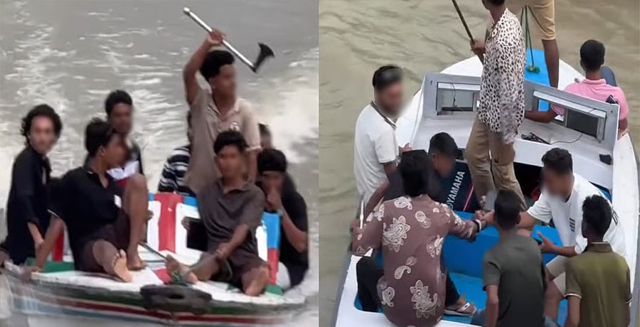 ভাঙ্গার ছিলাধরচর এলাকায় নদের পাড়ে বসবাসকারীরা কয়েকজন জানায়, কয়েকটি স্পীডবোটে স্থানীয় কিছু বখাটেরা চাপাতি ও রাম দা নিয়ে নদীতে মহড়া দেয়। তাদের মধ্যে ভাঙ্গা ছিলাধরচর গ্রাম ও পাশের হোগলাডাঙ্গী গ্রামের দুই একজন উঠতি বয়সের যুবক ছিলো। অন্যদের চিনতে পারে নি তারা।