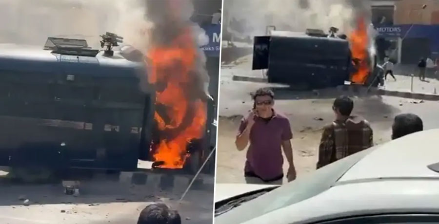পৃথক রাজ্যের দাবিতে লাদাখে বিক্ষোভ, পুলিশ ভ্যানে আগুনপৃথক রাজ্যের দাবিতে লাদাখে বিক্ষোভ, পুলিশ ভ্যানে আগুন