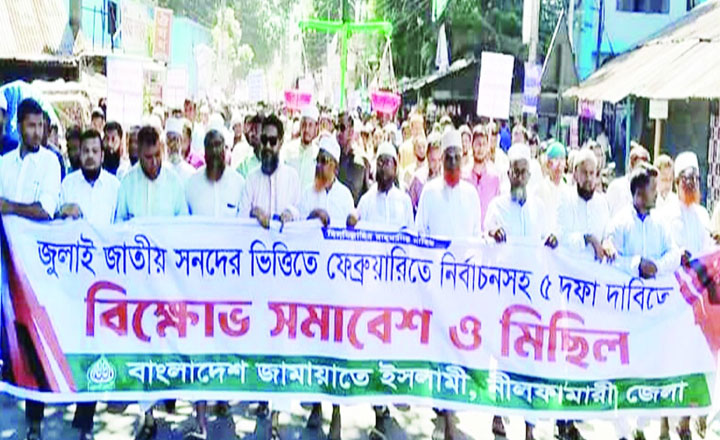 নীলফামারীতে জুলাই সনদের ভিত্তিতে ফেব্রুয়ারিতে জাতীয় নির্বাচনসহ পাঁচ দফা দাবিতে বিক্ষোভ সমাবেশ ও মিছিল করেছে বাংলাদেশ জামায়াতে ইসলামী নীলফামারী জেলা শাখা।