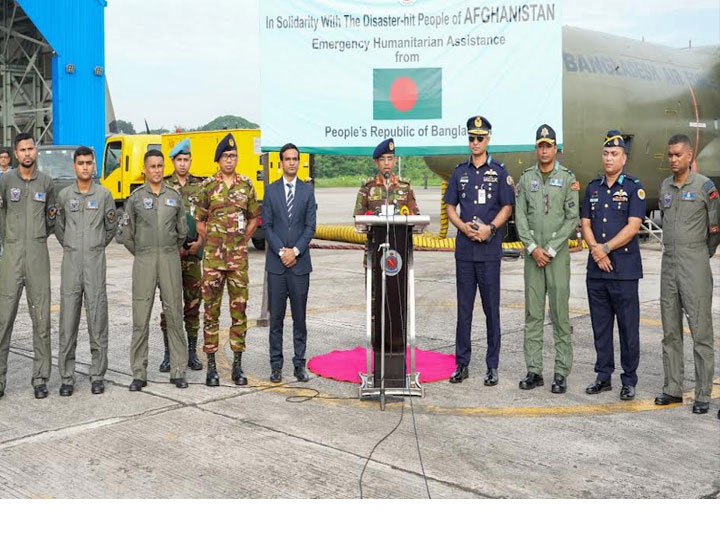 আন্তঃবাহিনী জনসংযোগ পরিদপ্তর (আইএসপিআর) শুক্রবার এক সংবাদ বিজ্ঞপ্তিতে জানিয়েছে, প্রধান উপদেষ্টার নির্দেশে ভূমিকম্পে সৃষ্ট আকস্মিক দুর্যোগ মোকাবেলায় আফগান জনগণের জন্য বাংলাদেশ সরকারের পক্ষ থেকে জরুরি মানবিক সহায়তা প্রদানের উদ্যোগ নেওয়া হয়েছে। এরই ধারাবাহিকতায় সকাল ৮টায় বাংলাদেশ বিমান বাহিনীর একটি পরিবহন বিমান জরুরি ত্রাণ সামগ্রী নিয়ে কাবুলের উদ্দেশ্যে রওনা হয়েছে।