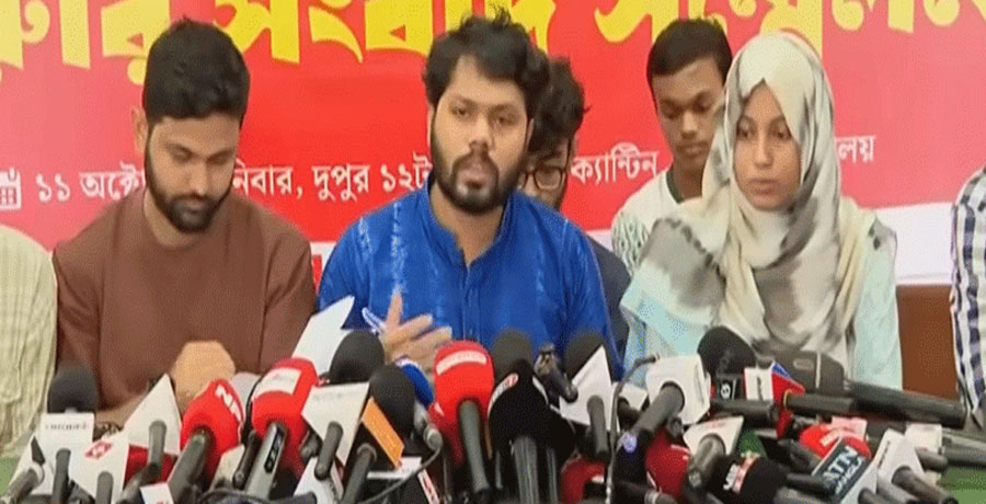 শনিবার (১১ অক্টোবর) ঢাকা বিশ্ববিদ্যালয়ের (ঢাবি) মধুর ক্যান্টিনে ‘জাতীয় নিরাপত্তা রক্ষার্থে গুম-খুনে অভিযুক্ত ২৮ সামরিক কর্মকর্তাদের সেফ এক্সিট দেওয়ার অপচেষ্টার প্রতিবাদে ও অতিদ্রুত দোষীদেরকে গ্রেপ্তার করে বিচারের মুখোমুখি করার দাবিতে’ জরুরি সংবাদ সম্মেলনে সংগঠনটির মুখপাত্র শরীফ ওসমান হাদি এ সব সব দাবি জানান। এ সময় অন্যান্য নেতারা উপস্থিত ছিলেন।