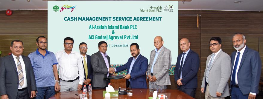 দেশের শীর্ষস্থানীয় শরিয়াভিত্তিক ব্যাংক, আল আরাফাহ ইসলামী ব্যাংক এবং এসিআই গোদরেজ এগ্রোভেট প্রাইভেট লিমিটেড-এর মধ্যে একটি সমঝোতা স্মারক স্বাক্ষরিত হয়েছে।