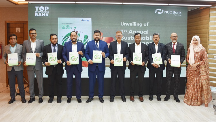এনসিসি ব্যাংকের উদ্যোগে আয়োজিত “টেকসই অর্থায়ন বিষয়ক সচেতনতামূলক প্রোগ্রামে আনুষ্ঠানিকভাবে ব্যাংকের প্রথম বার্ষিক টেকসই প্রতিবেদন- ২০২৪ প্রকাশ করা হয়।