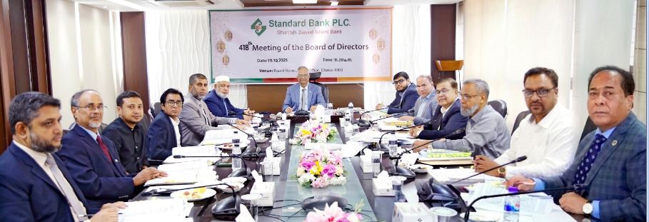 শরি‘আহ্ ভিত্তিক স্ট্যান্ডার্ড ব্যাংক পিএলসি. এর পরিচালনা পর্ষদের ৪১৮তম সভা আজ রোববার (১৯ অক্টোবর) ঢাকায় ব্যাংকের প্রধান কার্যালয়ের বোর্ডরুমে অনুষ্ঠিত হয়।