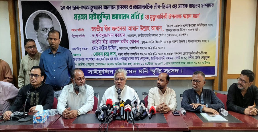 মঙ্গলবার (২১ অক্টোবর) দুপুরে জাতীয় প্রেস ক্লাবে '৯০-এর ছাত্র-গণঅভ্যুত্থানের অন্যতম রুপকার এবং ডেমোক্রেটিক লীগের (ডিএল) সাবেক সাধারণ সম্পাদক সাইফুদ্দিন আহমেদ মনির দ্বিতীয় মৃত্যুবার্ষিকী উপলক্ষে আয়োজিত স্মরণ সভায় আমান এসব কথা বলেন। সাইফুদ্দিন আহমেদ মনি স্মৃতি সংসদের উদ্যোগে এই স্মরণ সভা অনুষ্ঠিত হয়।