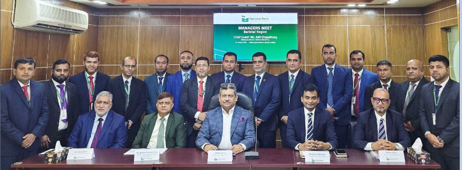 ন্যাশনাল ব্যাংক পিএলসি সোমবার বরিশাল অঞ্চলের ২৩টি শাখার ব্যবস্থাপকবৃন্দের সঙ্গে “ম্যানেজার্স মিট” আয়োজন করে।