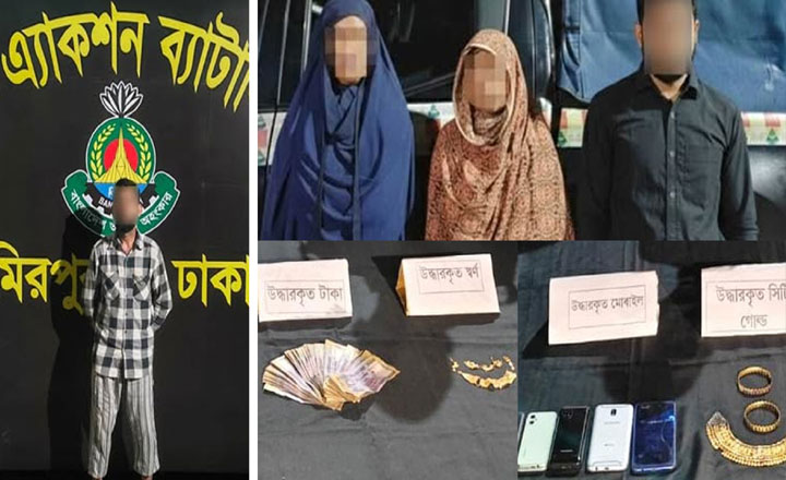 রাজধানীর মিরপুরে ১০৫ ভরি সোনা ও নগদ প্রায় ৩২ লাখ টাকা ডাকাতির ঘটনায় ঢাকার সদরঘাট থেকে মূলহোতা মো. বিল্লাল হোসেনসহ চারজনকে গ্রেফতার করেছে র্যাপিড অ্যাকশন ব্যাটালিয়ন (র্যাব)।