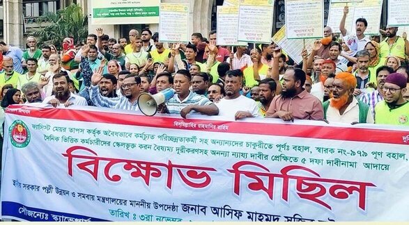 এদিকে নিরুপায় হয়ে আজ সোমবার (৩ নভেম্বর) ঢাকা দক্ষিণ সিটির পরিচ্ছন্নতাকর্মীদের সংগঠন স্ক্যাভেঞ্জার্স অ্যান্ড ওয়ার্কার্স ইউনিয়নের নেতা ও পরিচ্ছন্নতাকর্মীরা নগরভবনে ৫ দফা কর্মসূচি পালন করেছেন। সংগঠনটির সাধারণ সম্পাদক আব্দুল লতিফের নেতৃত্বে ৫ দফা দাবি আদায়ে শান্তিপূর্ণ অবস্থানসহ কঠোর কর্মসূচি পালিত হয়েছে।