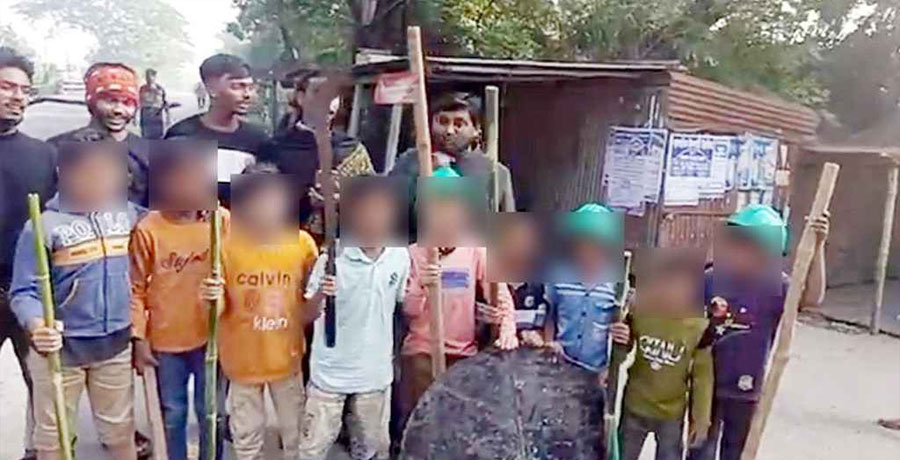 কার্যক্রম নিষিদ্ধ আওয়ামী লীগের ঢাকা ‘লকডাউন’ কর্মসূচির অংশ হিসেবে ফরিদপুরে দেশীয় অস্ত্র হাতে মহাসড়ক অবরোধ করেছেন দলটির নেতাকর্মীরা। এ সময় অন্ততপক্ষে ১০ জন শিশু হেলমেট মাথায় ও লাঠিসোঁটা হাতে সড়কে অবস্থান করে। তাদের মধ্যে একটি শিশুর হাতে রামদা নিয়ে স্লোগানও দিতে দেখা যায়।