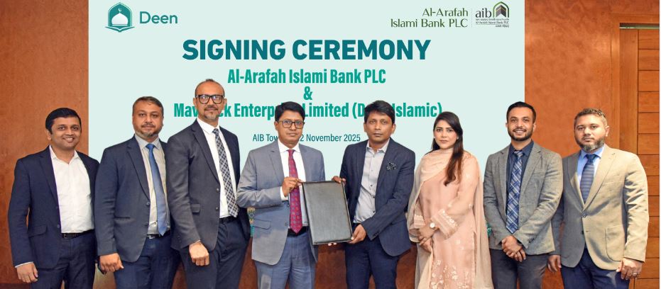 দেশের শীর্ষস্থানীয় শরিয়াভিত্তিক আর্থিক প্রতিষ্ঠান আল-আরাফাহ ইসলামী ব্যাংক পিএলসি এবং সমন্বিত ইসলামী ডিজিটাল প্ল্যাটফর্ম ম্যাভেরিক এন্টারপ্রাইজ লিমিটেড (দীন ইসলামিক) এর মধ্যে একটি কৌশলগত চুক্তি স্বাক্ষরিত হয়েছে।