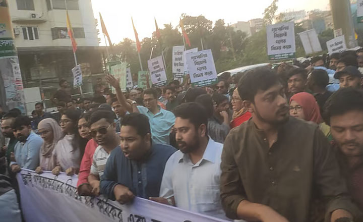 আজ শনিবার (২২ নভেম্বর) বিকেল সোয়া চারটায় জাতীয় নাগরিক পার্টি (এনসিপি) রাজধানীর ইস্কাটন গার্ডেন রোডের মাথা থেকে এই মিছিল শুরু হয়। মিছিলের নেতৃত্বে রয়েছেন এনসিপির আহ্বায়ক নাহিদ ইসলাম।