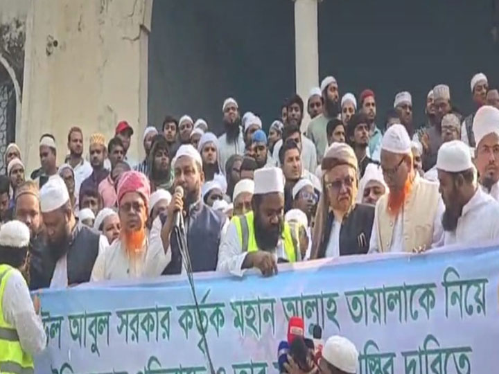 তারা আরও বলেন, এ দেশের মানুষের দিন শুরু হয় আজানের ধ্বনিতে। মুসলমানের এই দেশে যদি আল্লাহকে নিয়ে কেউ কটূক্তি করে, তাহলে তাকে জীবিত রাখা যাবে না।