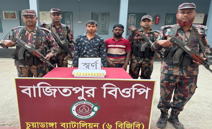 মেহেরপুর সদর উপজেলার বাজিতপুর সীমান্ত এলাকা থেকে ১০টি স্বর্ণের বারসহ মোঃ আব্বাস আলী ও মিজান রহমান শেখ নামের দুই স্বর্ণ চোরাকারবারীকে আটক করেছে বিজিবি। আজ রবিবার (৩০ নভেম্বর) বিকেলের দিকে চুয়াডাঙ্গা ৬ ব্যাটালিয়নের বাজিতপুর বিওপির সদস্যরা বিশেষ অভিযানে তাদের আটক করে।