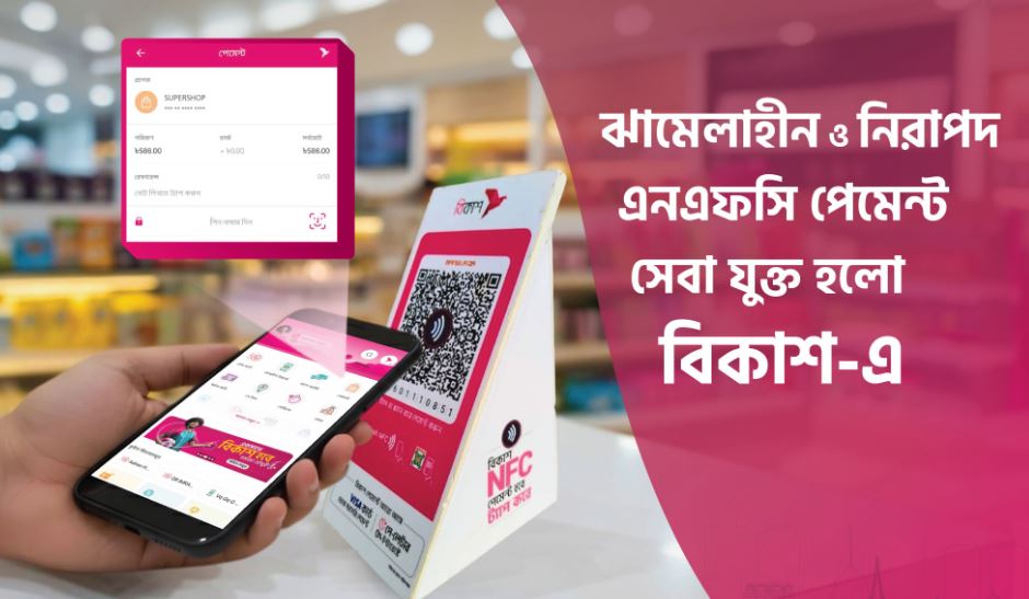 প্রযুক্তির অগ্রগতিকে কাজে লাগিয়ে প্রতিদিনের লেনদেনকে আরও সহজ, নিরাপদ ও ঝামেলাহীন করতে প্রতিনিয়ত নতুন নতুন গ্রাহককেন্দ্রিক সেবা নিয়ে আসছে বিকাশ। তারই ধারাবাহিকতায় এবার এনএফসি পেমেন্ট সুবিধা চালু করলো প্রতিষ্ঠানটি। এই প্রযুক্তি ব্যবহার করে গ্রাহকরা এখন ক্যাশলেস, কন্টাক্টলেস ও নিরাপদ লেনদেনের অভিজ্ঞতা নিতে পারছেন। ধারাবাহিকভাবে বিকাশ-এর এই এনএফসি পেমেন্ট সেবাটি সারাদেশের মার্চেন্ট পয়েন্টগুলোতে বিস্তৃত করা হবে।