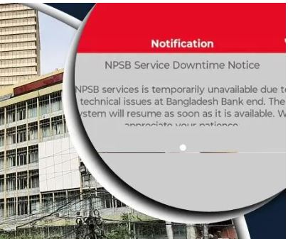 বিভিন্ন ব্যাংক গ্রাহককে নোটিশ দিয়ে জানানো হয়েছে, ‘প্রযুক্তিগত সমস্যার কারণে বাংলাদেশ ব্যাংকের প্রান্তে এনপিএসবি সেবা সাময়িকভাবে অকার্যকর রয়েছে। সিস্টেম দ্রুত পুনরায় চালু করার চেষ্টা চলছে। এই অসুবিধার জন্য আন্তরিকভাবে দুঃখিত।’