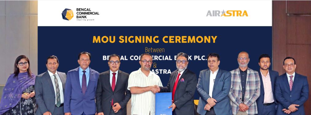 আজ বুধবার বঙ্গল কমার্শিয়াল ব্যাংকের প্রধান কার্যালয়ে এ দুই প্রতিষ্ঠানের মধ্যে সংক্রান্ত সমঝোতা স্মারক স্বাক্ষরিত হয়। সমঝোতা স্মারকে স্বাক্ষর করেন ব্যাংকের ব্যবস্থাপনা পরিচালক ও প্রধান নির্বাহী তারিক মোর্শেদ এবং এয়ার অ্যাস্ট্রার প্রধান নির্বাহী ইমরান আসিফ।