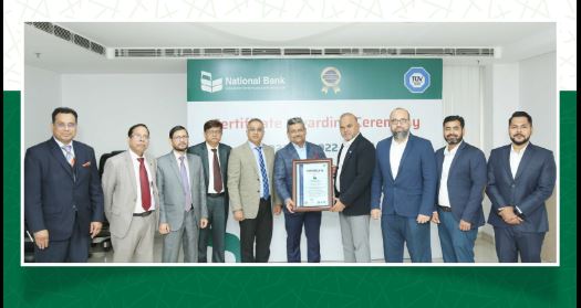ন্যাশনাল ব্যাংক আন্তর্জাতিক মানসম্পন্ন ISO 27001:2022 Information Security Management System (ISMS) সার্টিফিকেশন অর্জন করেছে। এ উপলক্ষে বৃহস্পতিবার (১১ ডিসেম্বর) ন্যাশনাল ব্যাংকের প্রধান কার্যালয়ে সার্টিফিকেট হস্তান্তর অনুষ্ঠিত হয়।