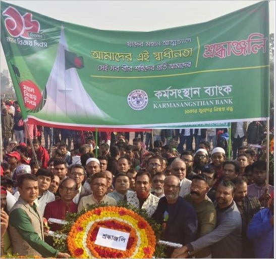 মহান বিজয় দিবসে কর্মসংস্থান ব্যাংকের পক্ষ থেকে ব্যবস্থাপনা পরিচালক অরুন কুমার চৌধুরী-এর নেতৃত্বে আজ মঙ্গলবার (১৬ ডিসেম্বর) জাতীয় স্মৃতিসৌধ, সাভারে পুষ্পস্তবক অর্পণের মধ্য দিয়ে মুক্তিযুদ্ধে সকল শহিদের প্রতি শ্রদ্ধা নিবেদন করা হয়।