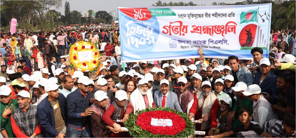 মহান বিজয় দিবস উদযাপন উপলক্ষ্যে জনতা ব্যাংক পিএলসির ব্যবস্থাপনা পরিচালক মোঃ মজিবর রহমানের নেতৃত্বে সাভারস্থ জাতীয় স্মৃতিসৌধে পুষ্পস্তবক অর্পণ করা হয়। এর আগে সকালে ব্যাংকের প্রধান কার্যালয়ে জাতীয় পতাকা উত্তোলন করা হয়।