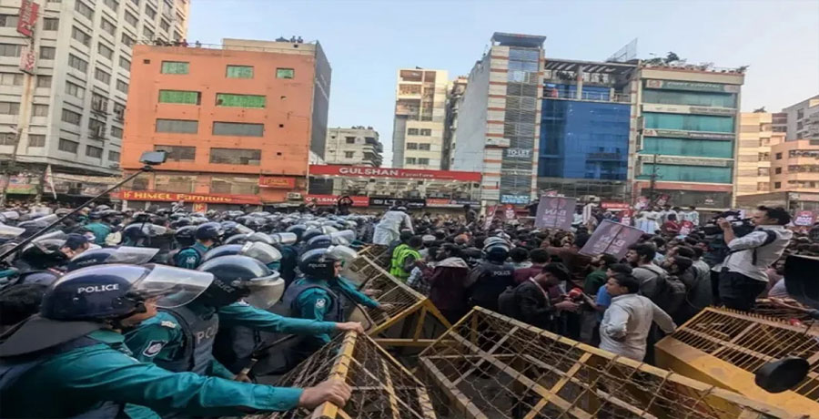 ভারতে আশ্রয় নেয়া শেখ হাসিনাসহ সব খুনিকে বাংলাদেশে ফিরিয়ে দেয়া ও ‘ভারতীয় প্রক্সি রাজনৈতিক দল, মিডিয়া লীগ ও সরকারি কর্মকর্তাদের অব্যাহত ষড়যন্ত্রের প্রতিবাদে জুলাই ঐক্যের ‘মার্চ টু ইন্ডিয়ান হাইকমিশন’ কর্মসূচিতে বাধা দিয়েছে পুলিশ।
