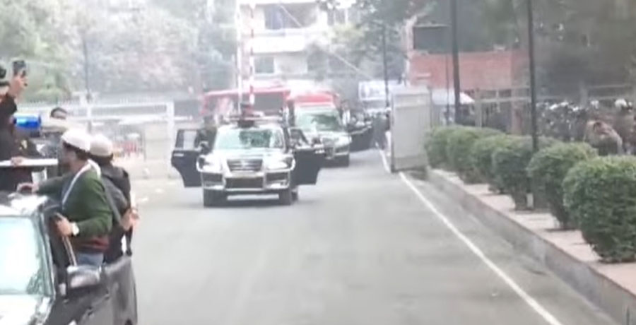 সাবেক প্রধানমন্ত্রী ও বিএনপি চেয়ারপারসন বেগম খালেদা জিয়ার মরদেহ কঠোর নিরাপত্তার মধ্য দিয়ে জাতীয় সংসদ ভবনের দক্ষিণ প্লাজায় পৌঁছেছে। তাকে বহন করা হয়েছে লাল-সবুজ রঙের জাতীয় পতাকায় মোড়ানো একটি ফ্রিজার ভ্যানে। সেনাবাহিনী হিউম্যান চেইন তৈরি করে রাষ্ট্রীয় প্রোটকলে তার মরদেহ আনা হয়।