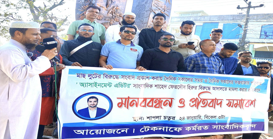 উখিয়া উপজেলা বিএনপির বিতর্কিত নেতা আরফাত চৌধুরীর বিরুদ্ধে মাছ লুটের অভিযোগ সংক্রান্ত সংবাদ প্রকাশের জেরে এক সাংবাদিকের বিরুদ্ধে মামলা দায়েরের ঘটনায় টেকনাফে মানববন্ধন ও প্রতিবাদ সমাবেশ অনুষ্ঠিত হয়েছে।