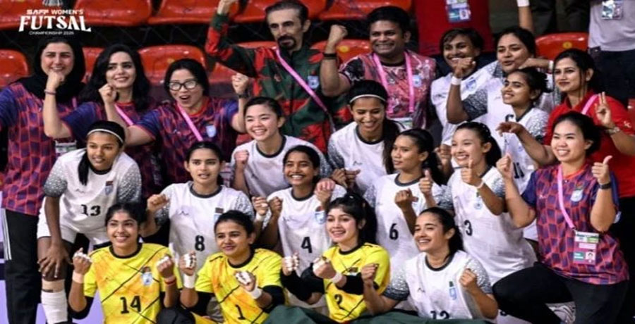 জয় ছিল শুধু সময়ের অপেক্ষা। আজ রোববার মাঠেও তার প্রমাণ দিয়েছে বাংলাদেশের মেয়েরা। সাফ ফুটসাল চ্যাম্পিয়নশিপে লিগ পর্বের শেষ ম্যাচে মালদ্বীপকে গোলবন্যায় ভাসিয়ে প্রথম আসরের শিরোপা জিতেছে বাংলাদেশ। সাবিনা-কৃষ্ণা-লিপির নৈপুণ্যে বাংলাদেশ ১৪-২ গোলে মালদ্বীপকে বিধ্বস্ত করেছে। হ্যাটট্রিক করেন সাবিনা ও লিপি।