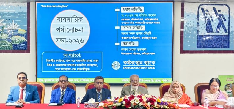 কর্মসংস্থান ব্যাংকের ঢাকা বিভাগীয় কার্যালয়ের আওতাধীন ঢাকা, ঢাকা উত্তর ও নারায়ণগঞ্জ অঞ্চলের আঞ্চলিক ব্যবস্থাপক, শাখা ব্যবস্থাপক এবং মাঠকর্মীদের অংশগ্রহণে আজ শনিবার (৩১ জানুয়ারি) “ব্যবসায়িক পর্যালোচনা সভা-২০২৬” যুব উন্নয়ন অধিদপ্তরের সম্মেলন কক্ষ, মতিঝিল-এ অনুষ্ঠিত হয়েছে।