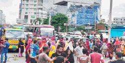 কুড়িল বিশ্বরোডে পোশাক শ্রমিকদের সড়ক অবরোধ, যান চলাচল বন্ধ